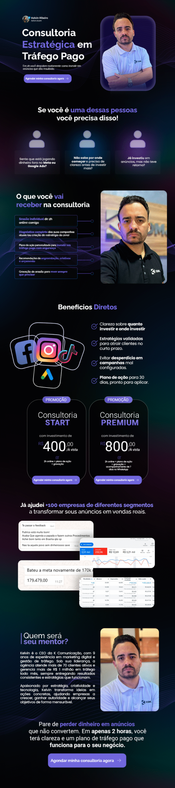 Após diversos anos de experiência, atuo eventualmente em parceria com uma agência de Marketing, construindo Landing Pages de alta conversão.